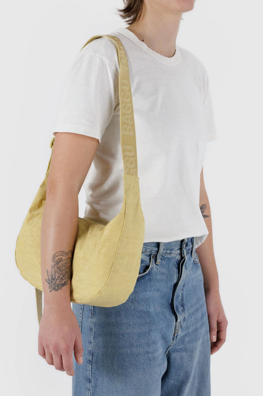 Practical doesn’t have to be boring. Our Medium Nylon Crescent Bag is effortlessly casual and large enough to carry more than just the essentials. Wear it slung over your shoulder or crossbody for a hands-free experience. Complete with two interior pockets that make it easy to stay organized. By Baggu.