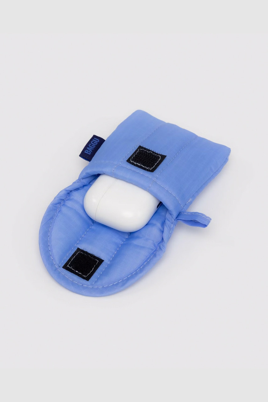 A quilted home for your earbuds, lightly padded to protect them from scratches and dirt. By Baggu.