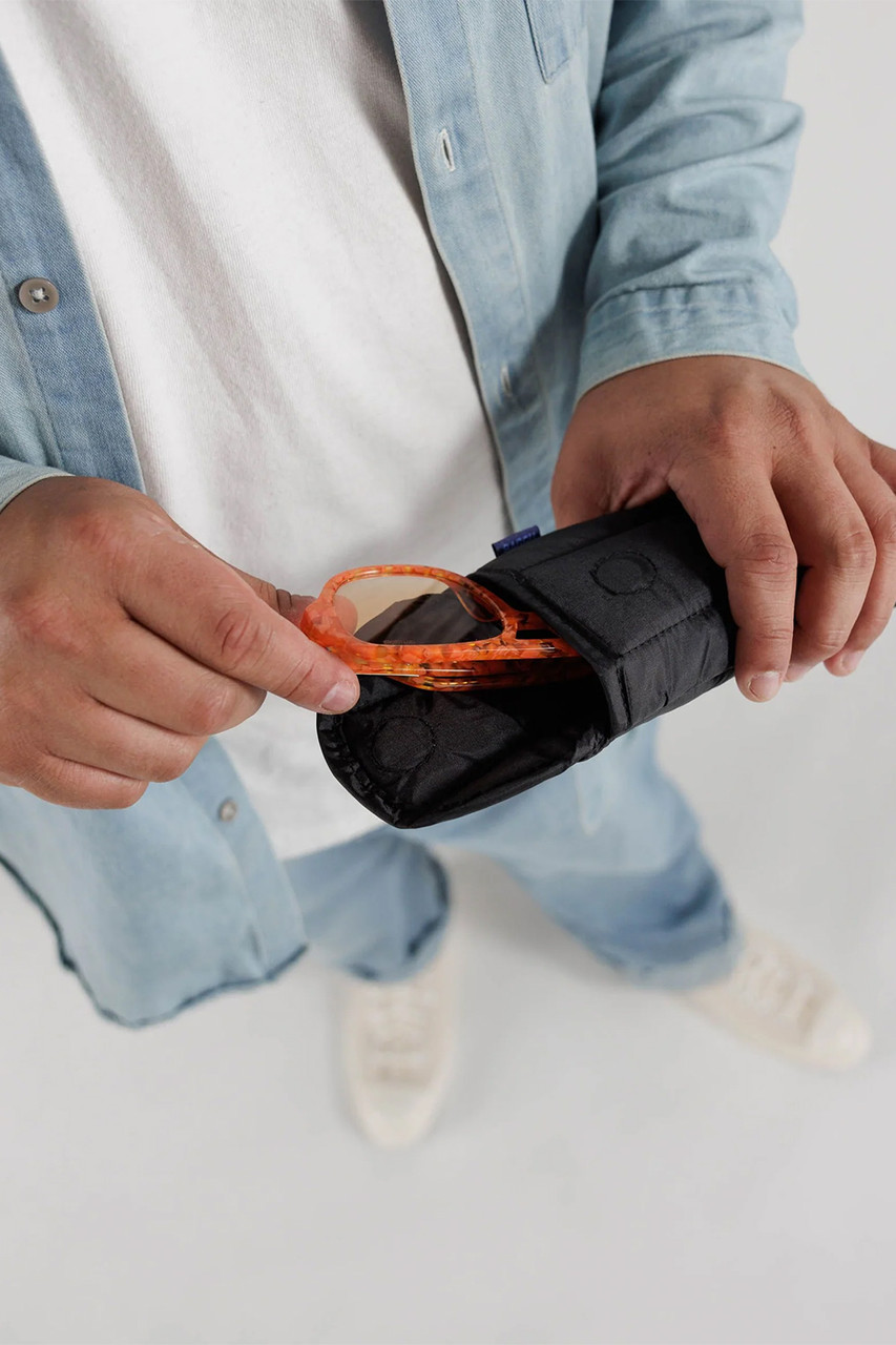 Our Puffy Glasses Sleeve cushions your glasses like a protective cloud, and makes them easy to find in your bag. By Baggu.
