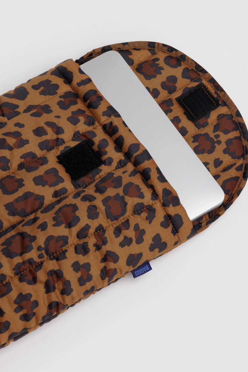 Your laptop does so much for you. Doesn’t it deserve a cozy place to live? Our puffy laptop sleeve is quilted and stuffed to provide most 14″ laptops and tablets with just enough padding for comfortable rides. By Baggu.