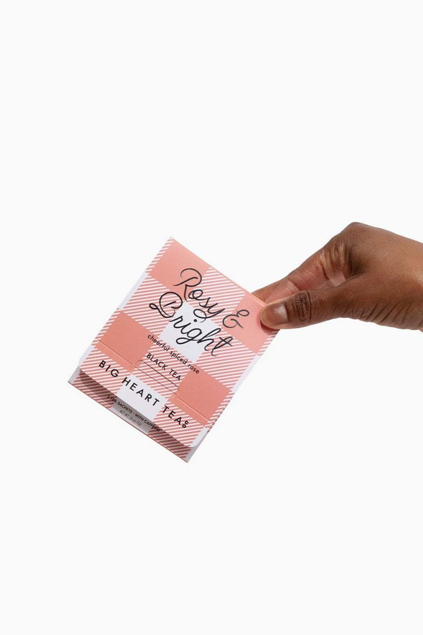 Hibiscus and rose blended with cinnamon and Assam black tea. Brews a beautiful magenta cup with a hint of holiday spice. Crafted to keep you rosy and bright this holiday season. By Big Heart Tea Co.