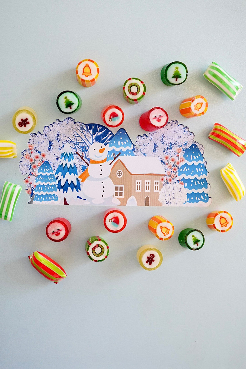 This year’s Holiday Mix has the following flavors: Watermelon (Santa Face), Raspberry (Santa’s Hat), Green Apple (Christmas Tree), Guava (Wreath), Coconut (Gingerbread Man) and Mango (Bell) designs; Strawberry-Kiwi, Keylime and Pineapple pillows. By CandyLabs.Â
