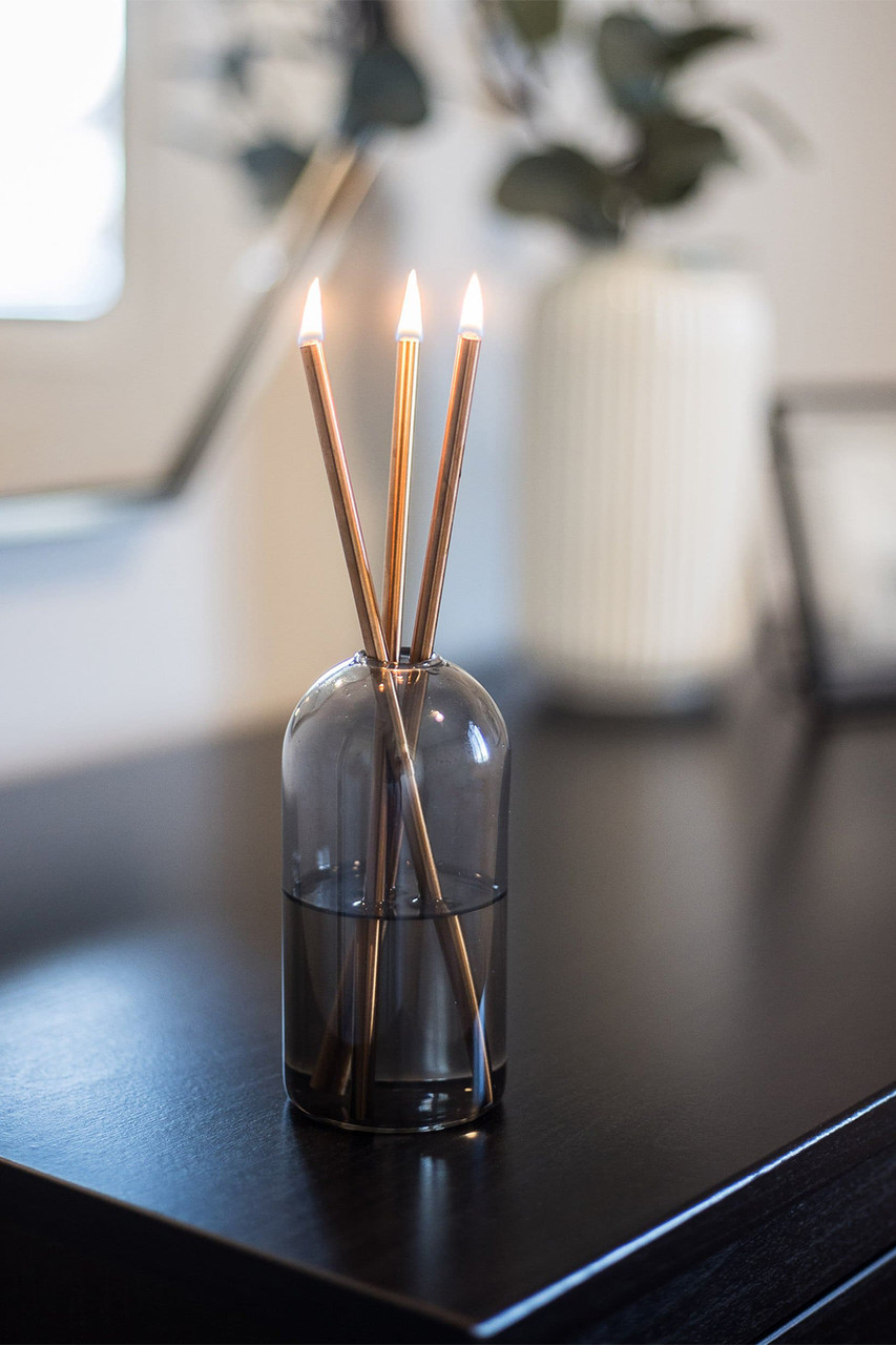 Storm – Calm within the chaos. A smokey-grey translucent vase that provides a subtle hint of moodiness to any home décor. Inspired by the celebrations of life, this translucent colored collection evokes emotion and memories while providing a hint of color to your everyday décor. Entire collection compliments all 5 candle colors effortlessly. By Everlasting Candle Co.