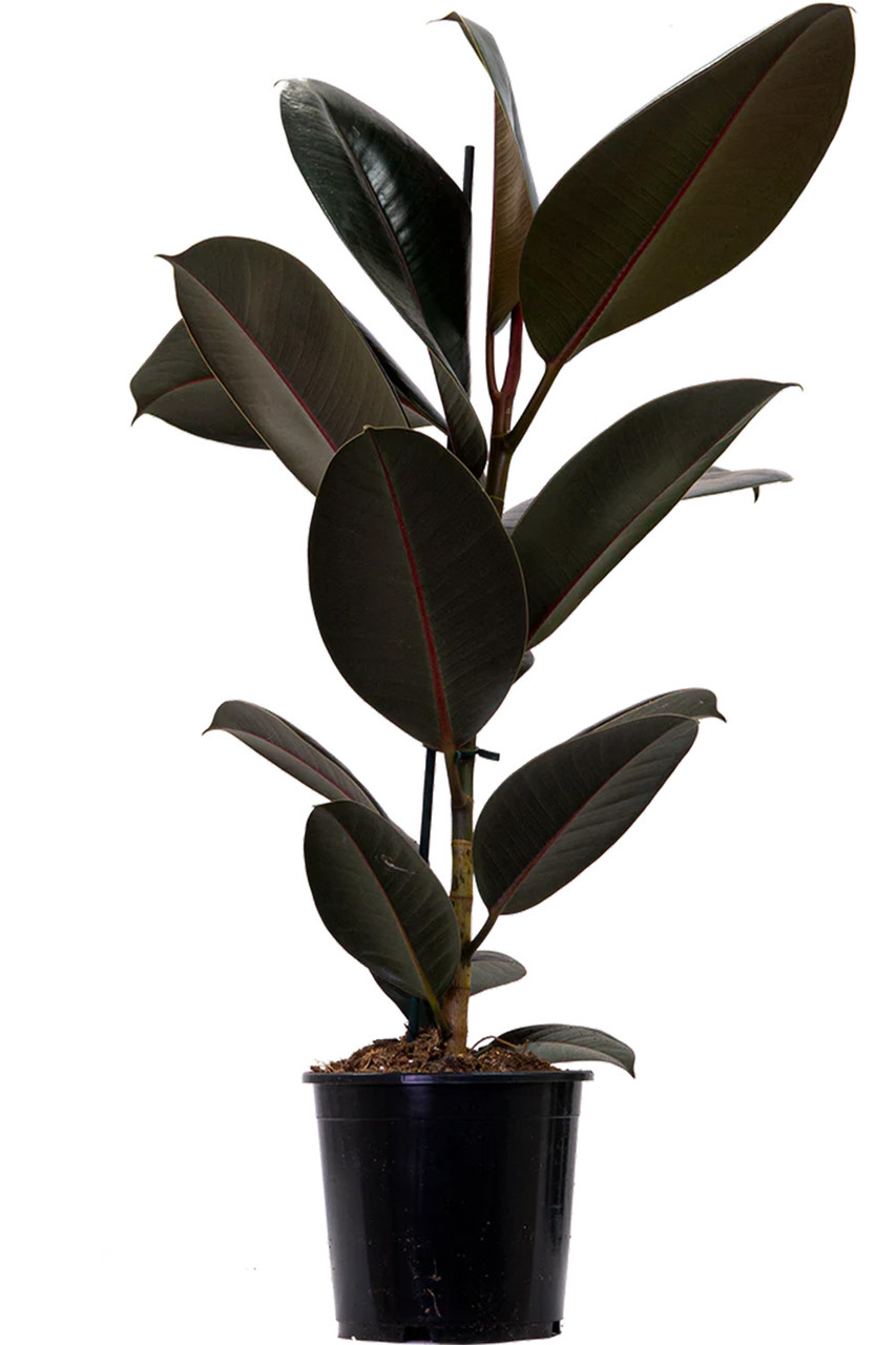 Introducing the Ficus Elastica Burgundy, also known as a Rubber Tree. It has stunning tall leaves in a deep, burgundy hue. To keep its style in check, ensure it basks in bright, indirect light. Water when the top inch of soil feels dry, typically every 1-2 weeks, and consider giving your Rubber Tree a gentle misting every now and then to keep its leaves looking chic. By Plantsome.Â