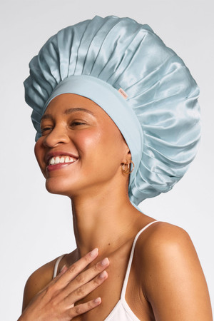 Kitsch Oversized Satin Bonnet in Haze Blue