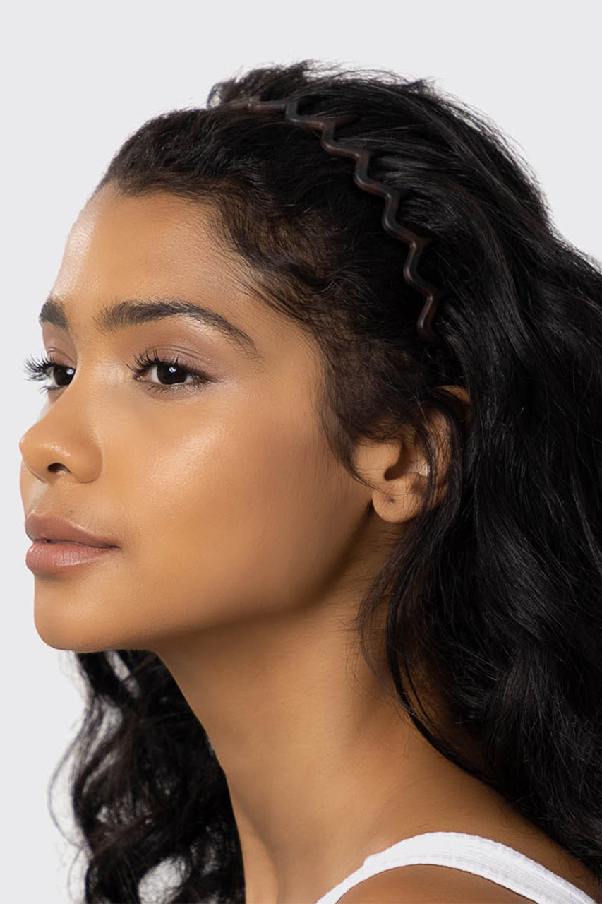 The chic design features long, wavy teeth for a comfortable non-slip grip and a stylish way to create slicked-back looks with ease. Comes in a 2-pack with classic black and tortoise shell hues to coordinate with any outfit. Crafted with recycled plastic, these sustainable and stylish headbands let you look your best while being gentle to the environment.