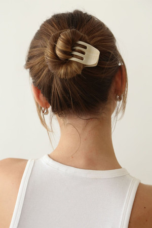 Buns made easy. Rounded teeth hug your hair for a secure hold without the need for an elastic, while the Sculpt Clip’s sleek, minimal design keeps your look effortless. By Kov Essentials.