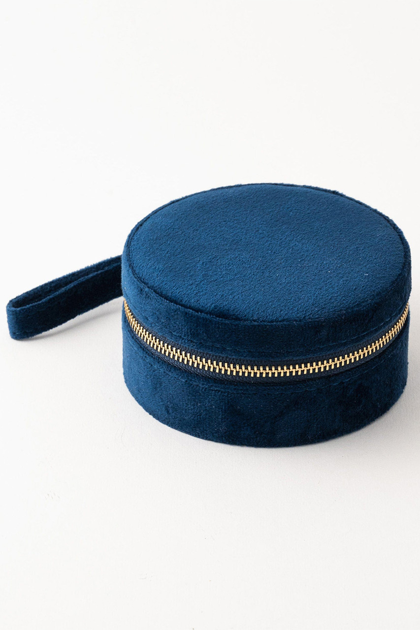 4″ Diameter x 2″ H Velvet Exterior Gold-Plated Brass Zipper & Pull