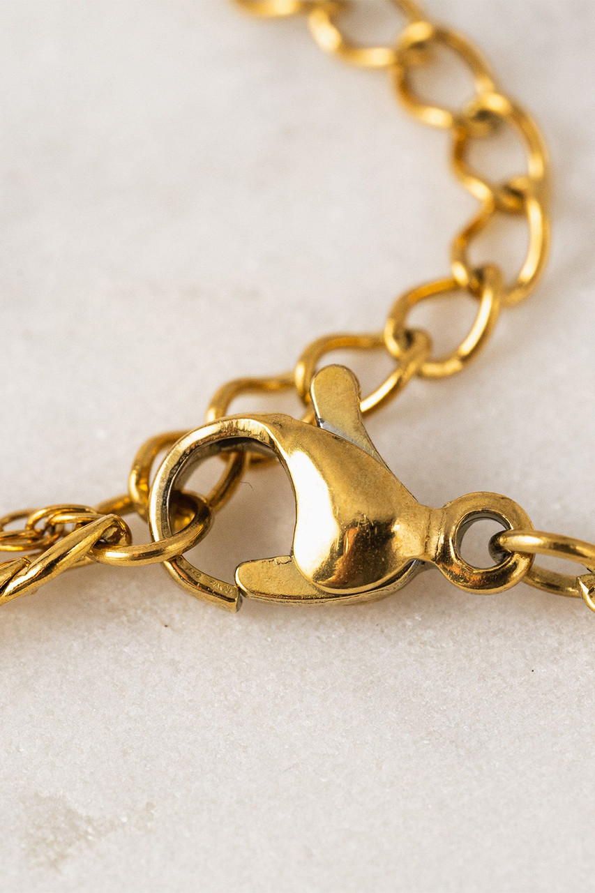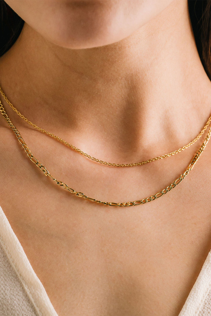 A double duty necklace that sets a tone of ease and sophistication. Made with PVD and stainless steel, you can wear this waterproof layered necklace anywhere. By Lover’s Tempo.
