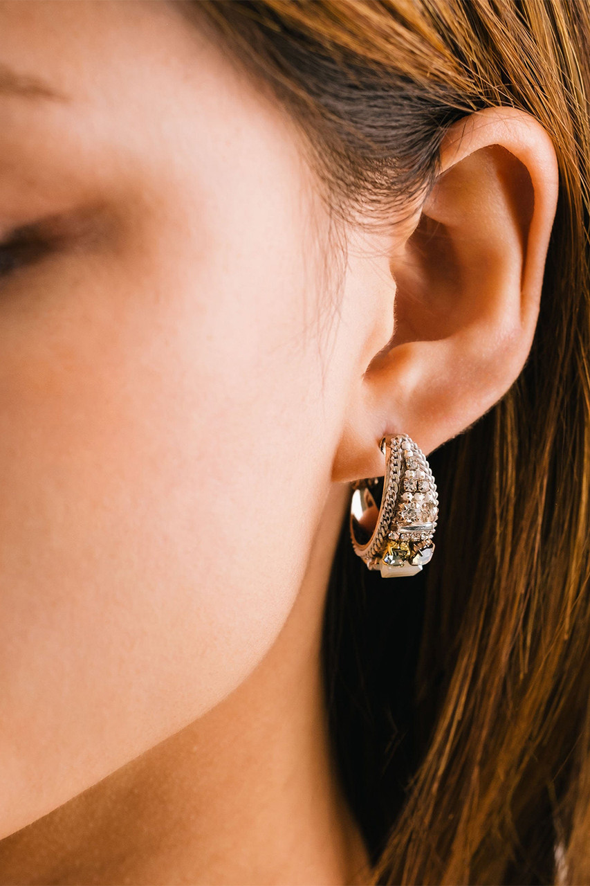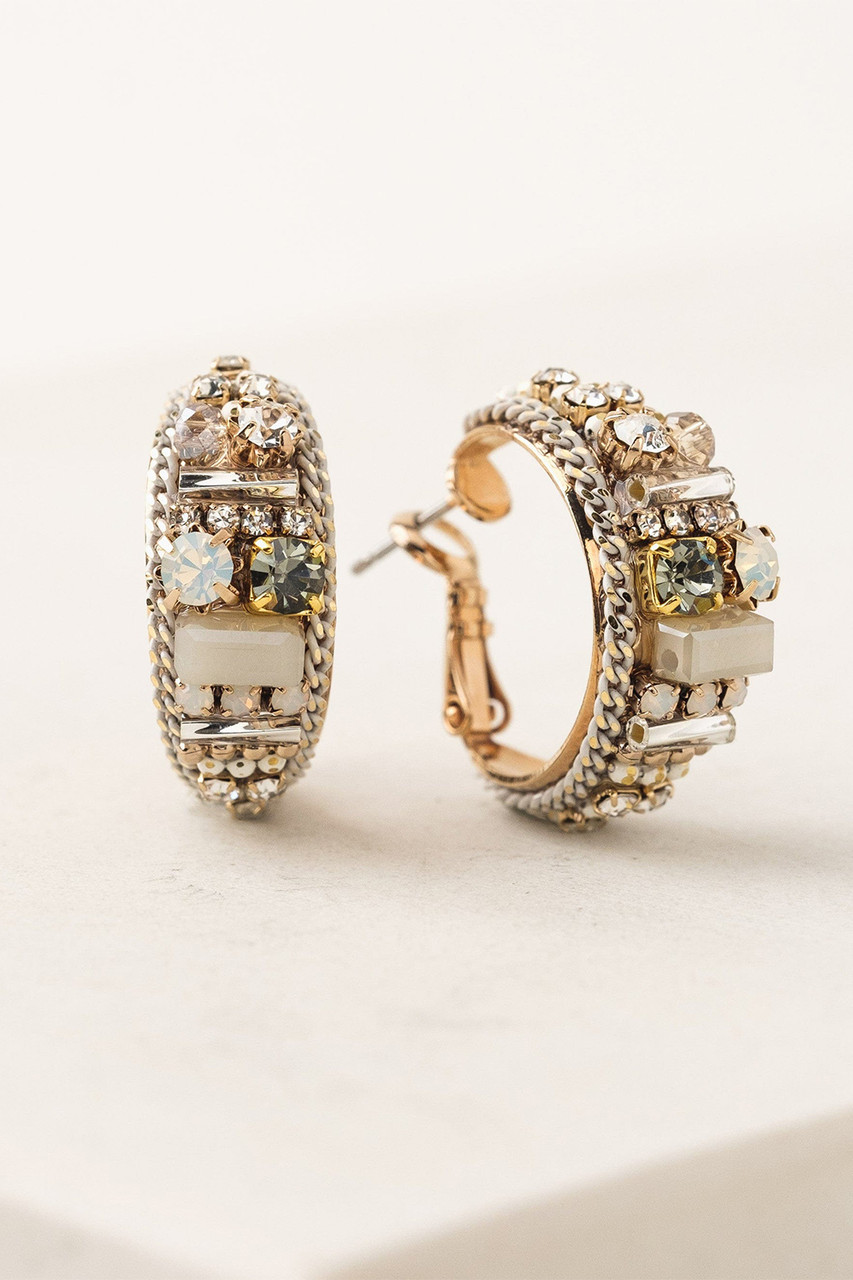 A bold pair of hoops perfect for that special occasion. The art-deco inspired design made with ultra sparkly crystals and chain make a grand statement for any look. By Lover’s Tempo.Â