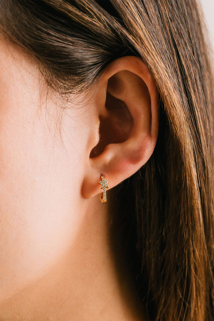 Pave hoops imbued with otherworldly power. These huggie earrings are stunners with their starry silhouette and light-catching magic. By Lover’s Tempo.Â