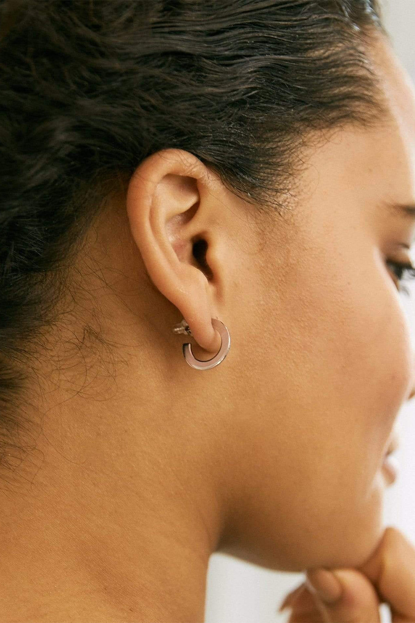 The small version of the Gloria open hoops, these earrings are a lovely alternative with an 11 mm opening. The perfect petite circle, this everyday pair features a smooth, flat silhouette. By Lover’s Tempo.Â