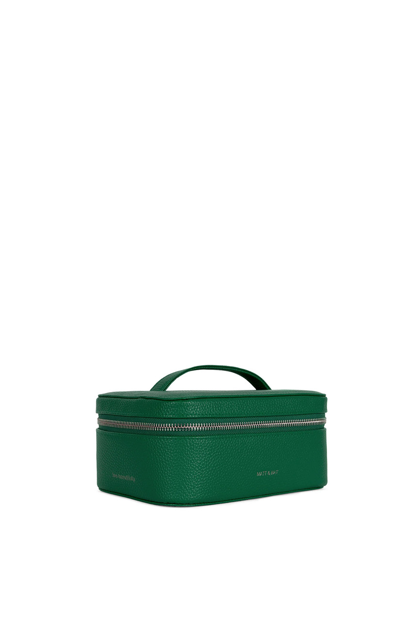 Vanity case with metal zip closure and top handle. By Matt & Nat.