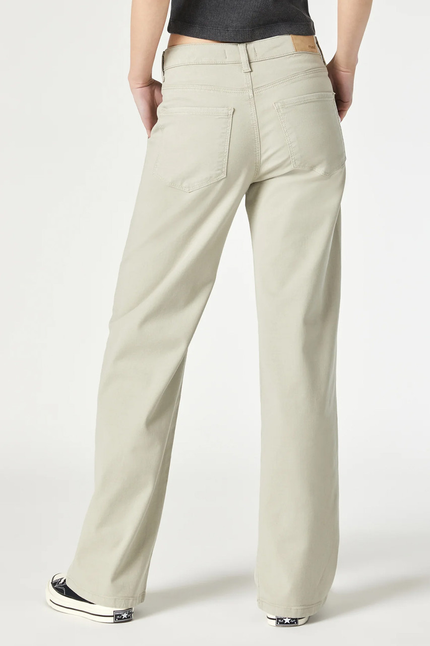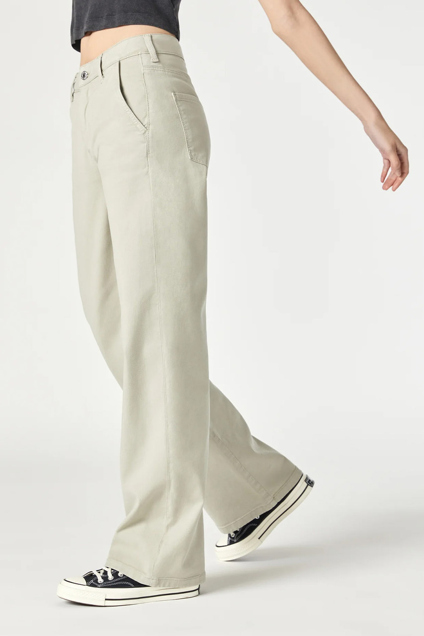 In Abbey Stone Luxe Twill High Rise, Wide Leg 49% Lyocell, 47% Cotton, 4% Elastane; 290 GR Fits True to Size 32″ Inseam Model is 5’9.5″ and wearing a size W26/L32