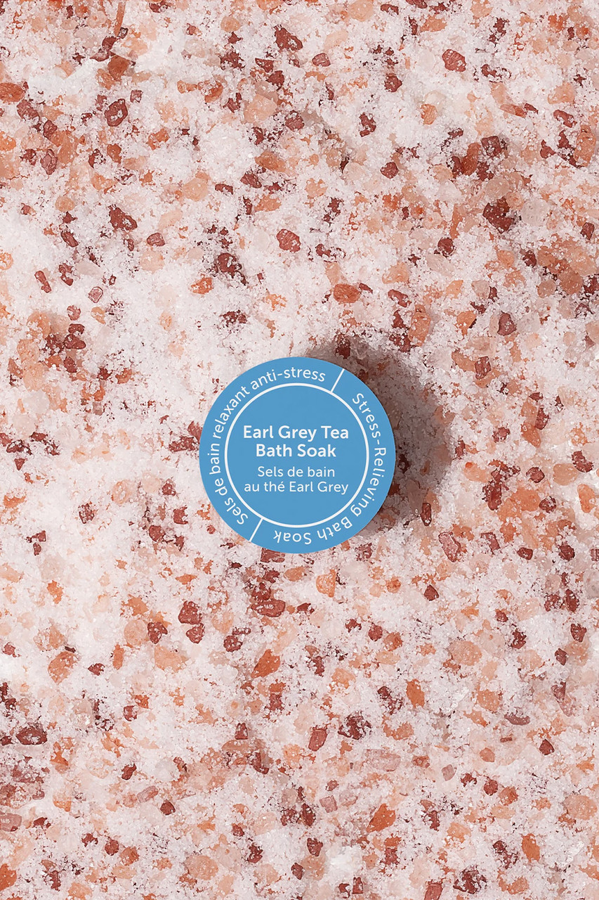 Indulge in a luxurious bath experience that transports you to a serene English tea garden. This new bath soak combines the classic, soothing aroma of bergamot and black tea with delicate floral notes, creating a warm, comforting ambiance reminiscent of a freshly brewed cup of Earl Grey.