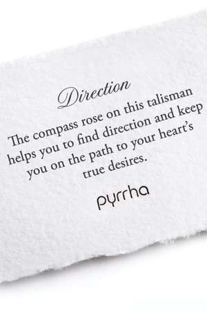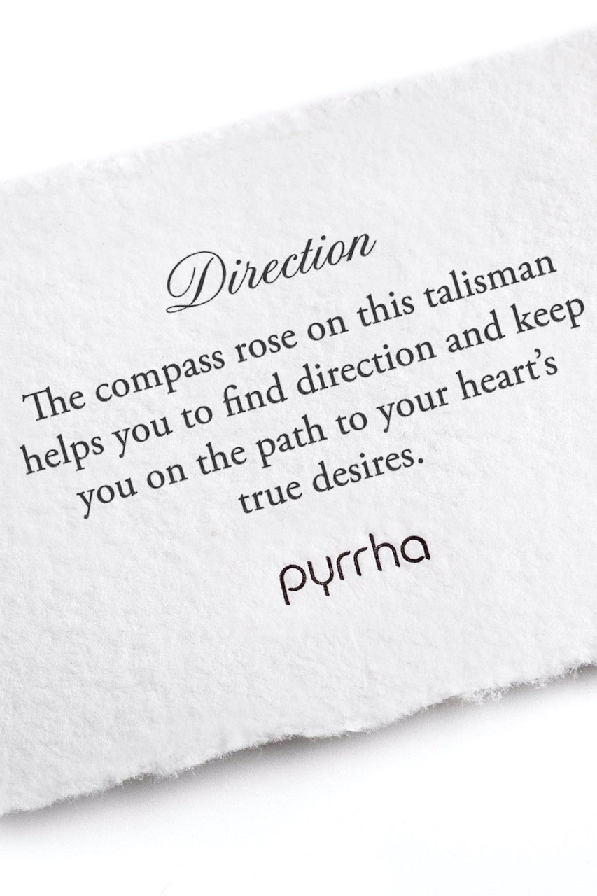 The compass rose on this talisman helps you to find direction and keep you on the path to your heart’s true desires. As a certified carbon-neutral B Corp, we’re committed to environmental responsibility—our jewelry is sustainably handcrafted with 100% recycled metals in our Vancouver studio using antique wax seals and imagery from the Victorian era. Handcrafted in Vancouver, Canada. By Pyrrha.
