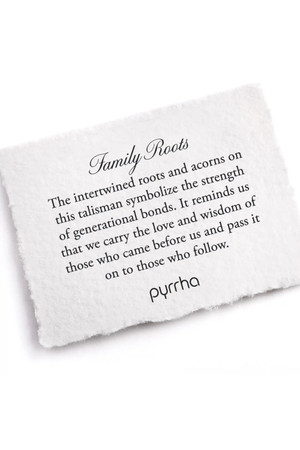 The intertwined roots and acorns on this talisman symbolize the strength of generational bonds. It reminds us that we carry the love and wisdom of those who came before us and pass it on to those who follow. By Pyrrha.