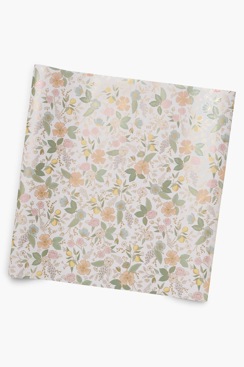 Dress up presents and projects with our wrapping paper rolls, which feature eight feet of paper with colorful illustrations, gold foil accents, and gridlines on the back. By Rifle Paper Co.