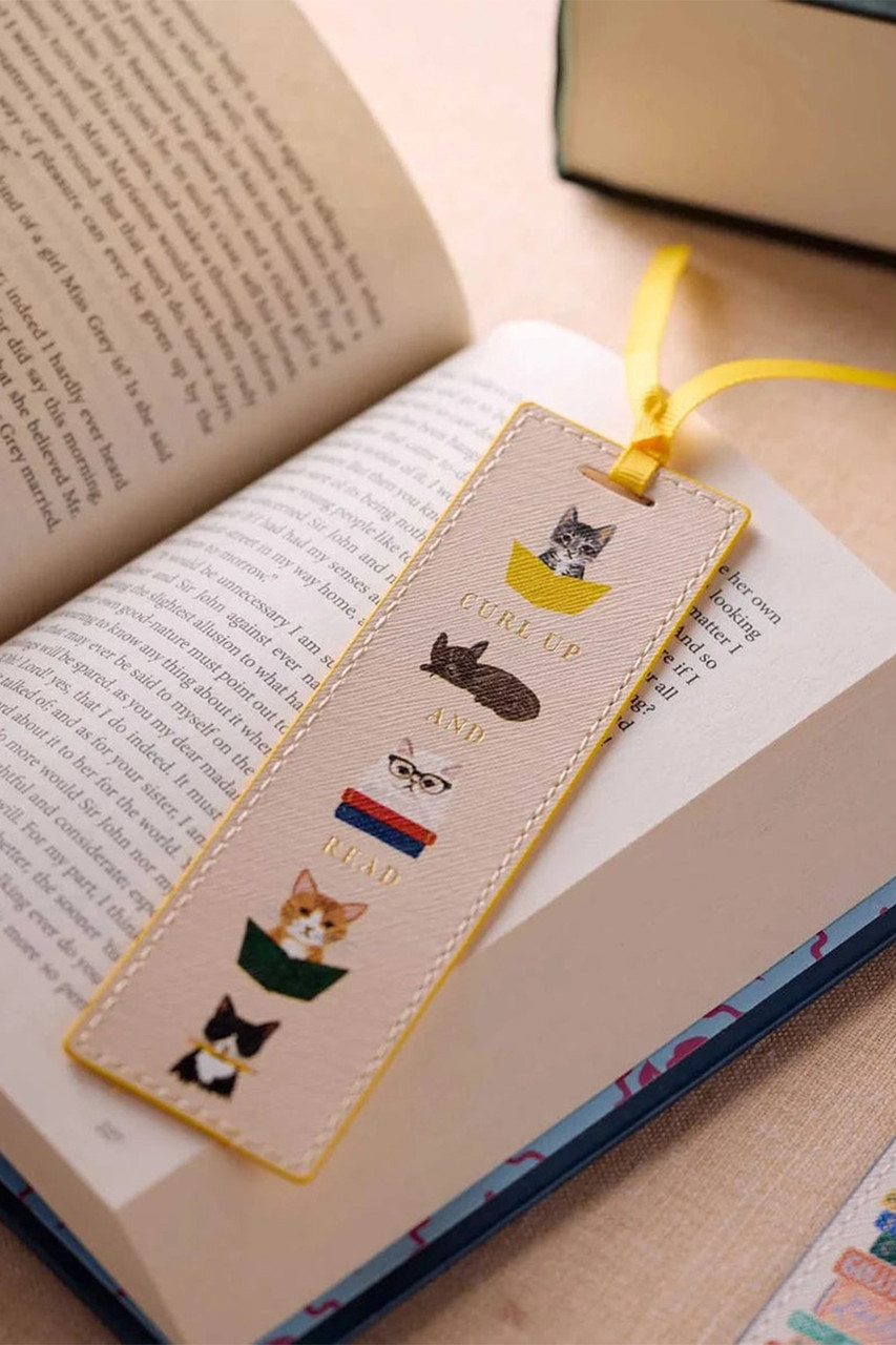 Never lose your spot with this new bookmark, featuring playful cat illustrations and a grosgrain ribbon tie. By Rifle Paper Co.