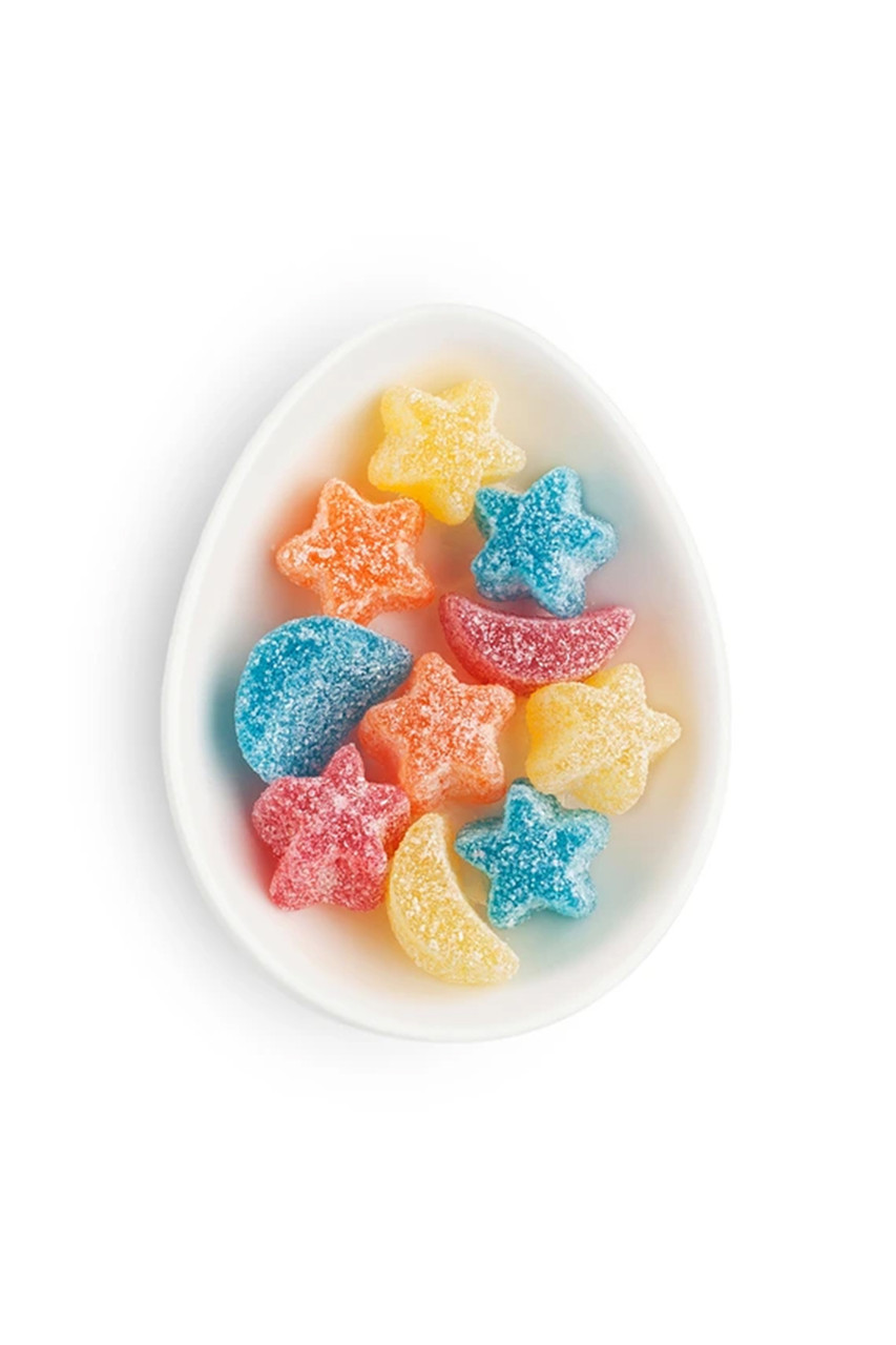 Made with real fruit juice*, these sweet and tart gummies have a taste that’s totally out of this world. One bite of these sweet & sour gummies will have you seeing stars… and suns, moons and clouds! Made with pectin, these gummies are gelatin-free—a perfect treat for vegans and vegetarians. By Sugarfina.