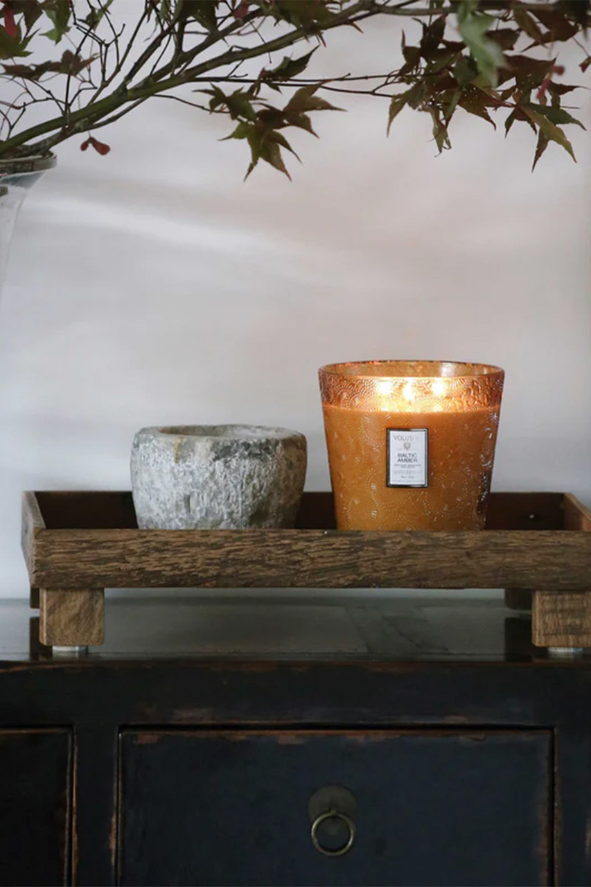 Warm up the ambience with an irresistibly sensual soirée of honeyed amber resin, velvety woods, and the rich incense of smoldering vanilla orchid. Bask in the swoon-worthy golden glow that radiates and inspires lingering warmth. Fall under the spell and prepare to be enchanted… By Voluspa.Â