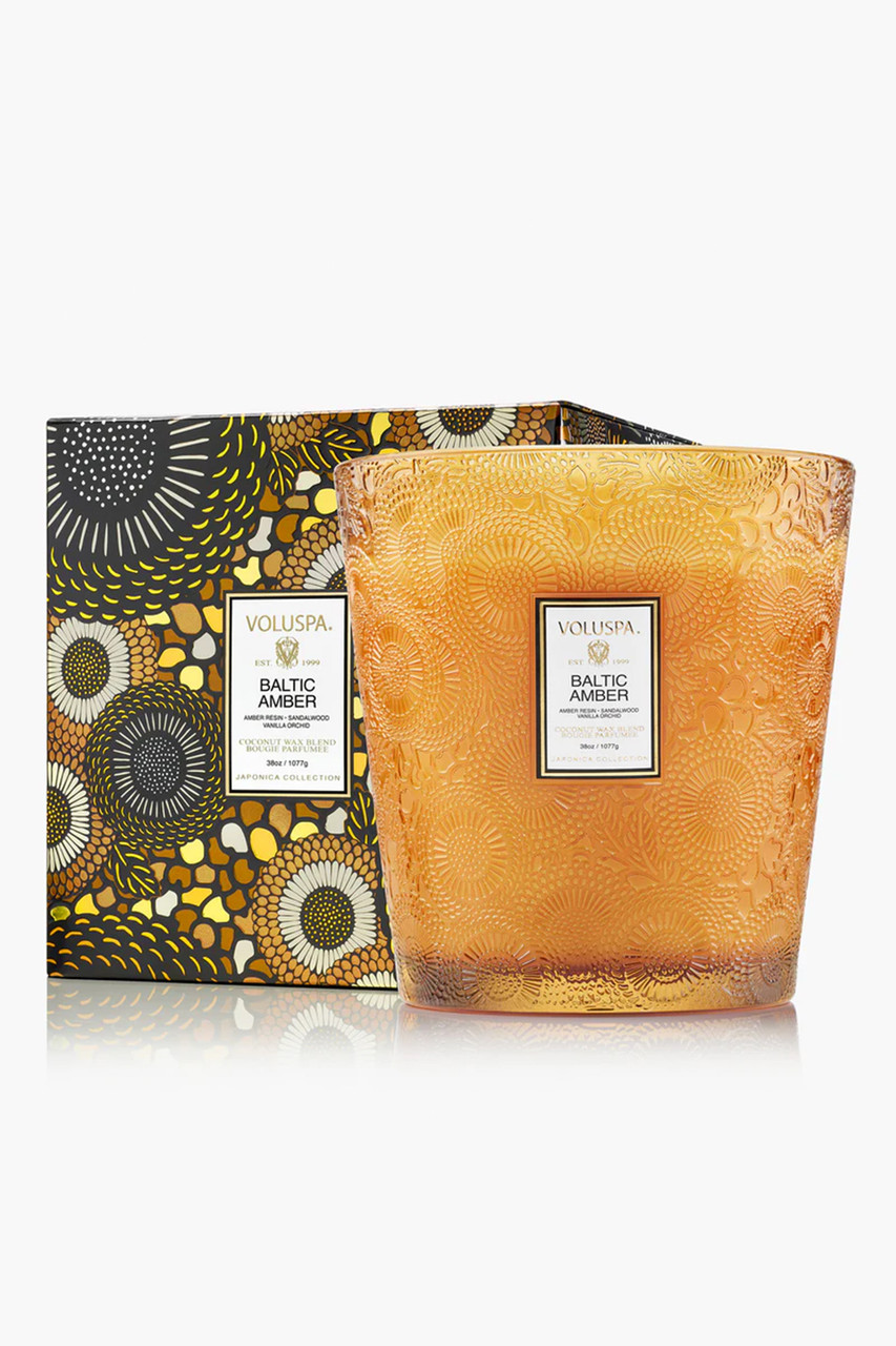 Voluspa’s unique coconut wax blend is housed in a 38 oz. embossed glass jar with decorative gift box. Our three wicks allow you to enjoy fragrance throw for 80 hours. Our candles are handcrafted in the United States and feature our proprietary, clean-burning coconut wax blend and natural wicks. Our products are free of phthalates, parabens and sulfates and are never tested on animals. Up-cycle this best seller into a keepsake after the last burn.