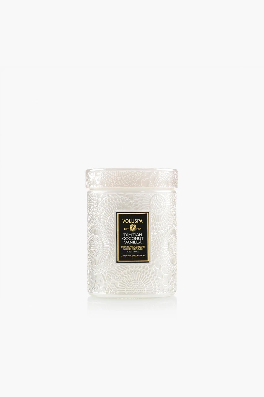 Voluspa’s unique coconut wax blend is housed in a 5.5 oz. glass embossed vessel and is topped with a matching lid that keeps the candle dust-free when not in use. The single wick allows you to enjoy fragrance throw for 50 hours. Our candles are handcrafted in the United States and feature our proprietary, clean-burning coconut wax blend and natural wicks. Our products are free of phthalates, parabens and sulfates and are never tested on animals. Up-cycle this best seller into a keepsake after the last burn.